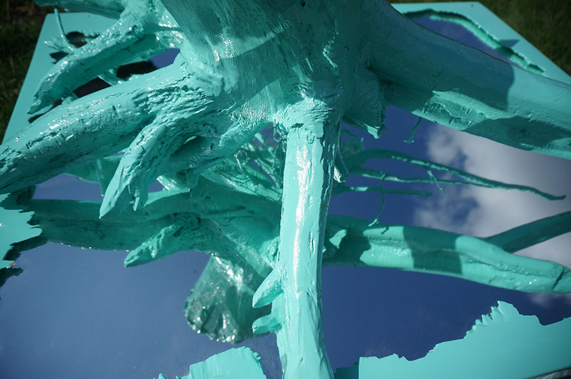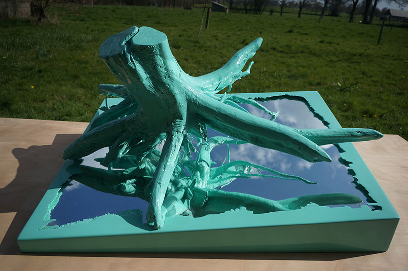 - Bois contreplaqué, Souche de merisier, Miroir, Résine époxyde, Peinture polyuréthane