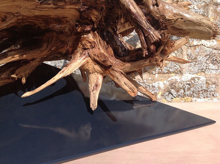 - Bois contreplaqué, Souche de chêne, Résine époxyde, Peinture et Vernis polyuréthane