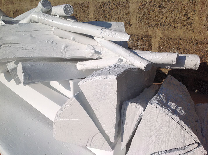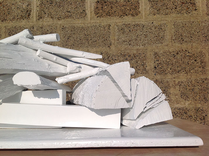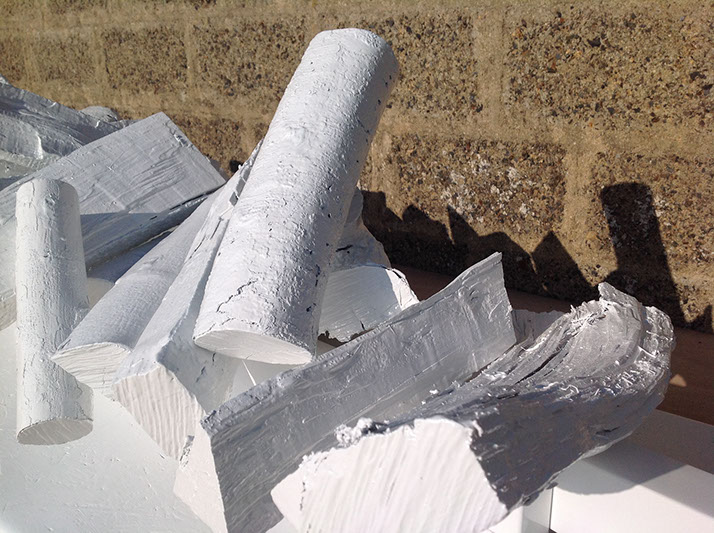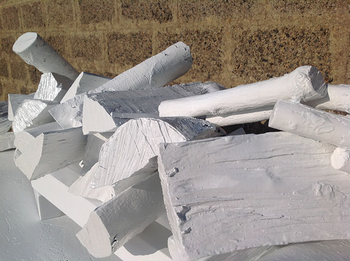 - Bois OSB, Bûches de chêne, de merisier et de hêtre, Résine époxyde, Peinture polyuréthane